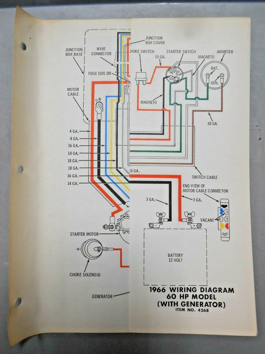 Oem Vtg 1966 Evinrude Outboard Wiring Diagram Sportfour 60 Hp Model In4268 Ebay